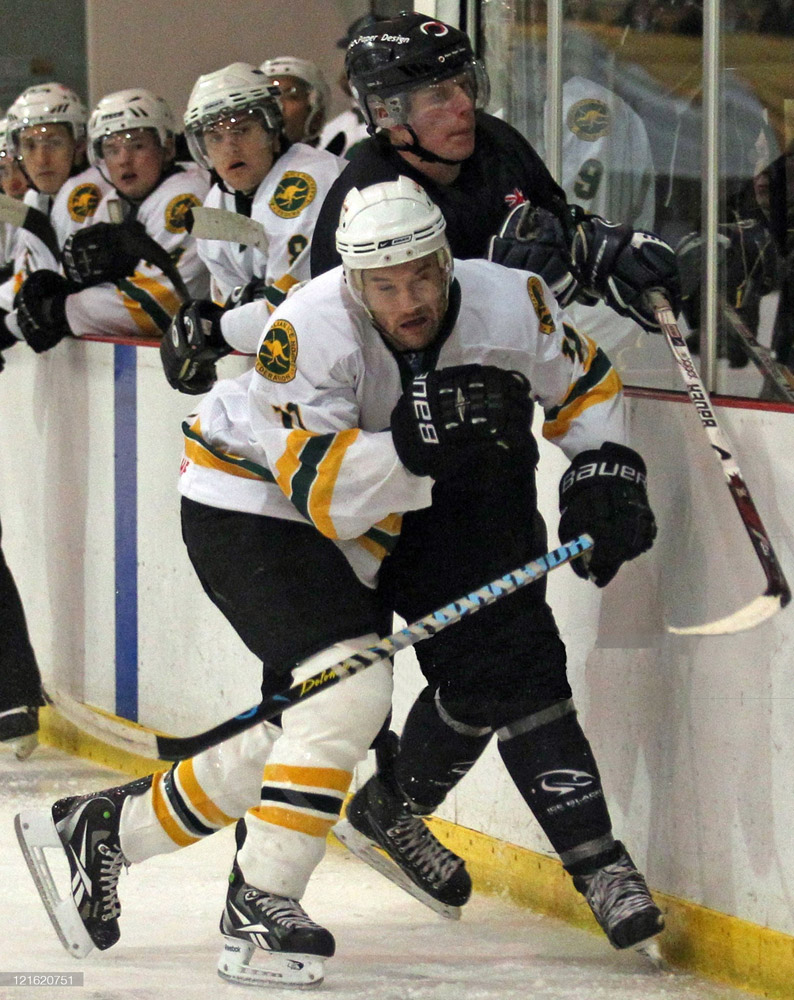 [Top] With the AIHL Melbourne Ice [Beneath] Versus Simon Glass of NZ. Winter Games NZ at Dunedin Ice Stadium on August 21, 2011 in Dunedin, New Zealand. (Photo by Rob Jefferies/Getty Images)