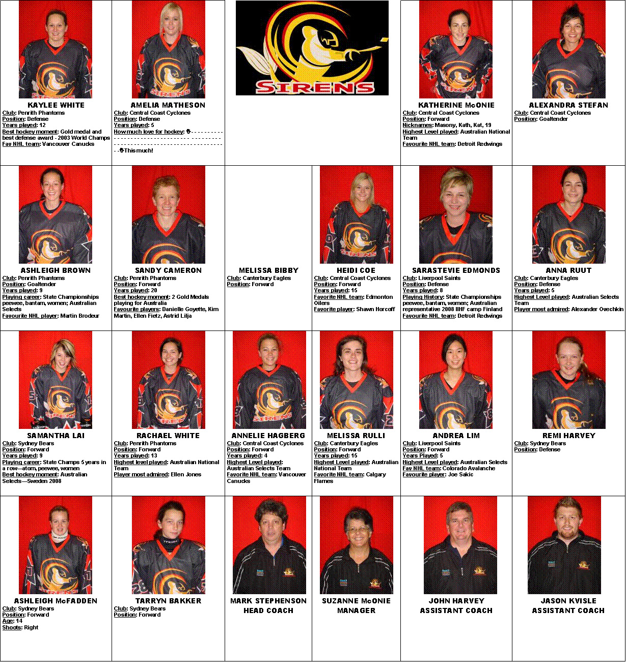 BORN 13 NOVEMBER 1986, Rachael White began ice hockey around 1995-6 and honed her skills in the local leagues with the Blacktown Flyers, under the guidance of coach Terry Jones. Her favourite player was Elle Jones, and their team won the state title in 1998 when White was 11. The 170cm forward represented New South Wales in the Australian Women’s Ice Hockey Championships, winning the 2002 Joan McKowen Trophy. Peter White coached the team of notable players, including Kaylee Reitsma (White), Liz Caruso, Suz Law, Melissa Rulli, Melissa Bibby and others. The forward went on to a notable career in the national league and the Australian National Team.