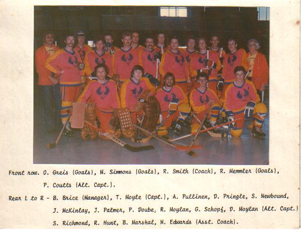 Back L-R: Brian Johnson (Goals), Peter Fletcher (Canadian), Chris Tait, John McKinlay, Rusty Smith, Dave Lynch, Peter Siddons, Johnny Durham (G), Terry Moyle, Mac Edwards (Coach). Front: Brian Reaney, Jim Beatty, Clive Thompson, Ken Hall (front Team Manager), Kevin Brown (C), Gary Logie (Canadian) and Peter Coutts.