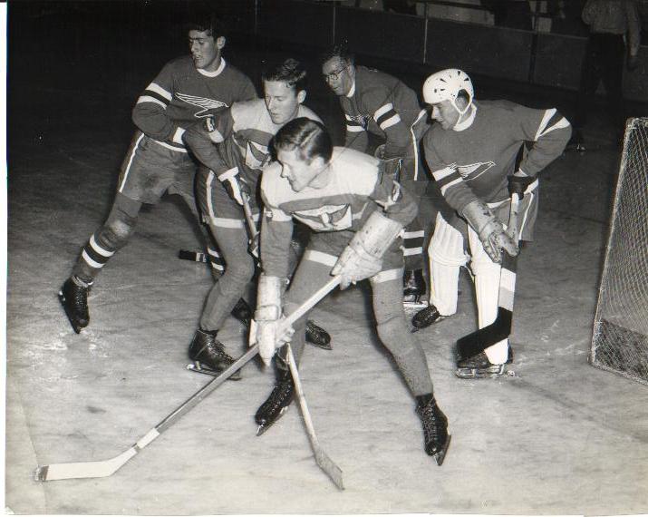 Many played the foundation games in 1964. Captain Ted Budarick played centre for the Redwings. Goalie Dean Gum had played three seasons in goal for the Falcons and once in Melbourne in 1965. Bob Harnass from Holland was the Redwings goalie. David Lynch was a very speedy winger who had twice won the state speed title, playing his second year with the Redwings. John McKinlay was a figure skater and held both junior and senior speed titles. Richard Williams held bronze and silver medals in figure skating and was in his first senior year with the Falcons, having played two years with the juniors. Rusty Smith, a junior player the previous year, was a winger and a good puck handler and scorer. Joe Szuna from Hungary was a very determined winger with the Maple Leafs. Bob Avenmarg was a foundation member of the Blackhawks and a hard-hitting defenseman.[13]
