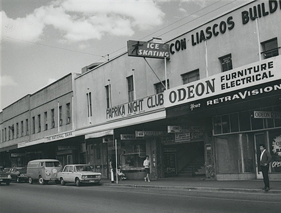 The sign above the gated stairs of the Con Liascos Building said "Ice Skating," but emblazoned across the verandah was the decidedly more spicy "Paprika Night Club". It was a fair dinkum club in the underground jazz scene of the 1950s and 60s. It had good live bands, a compere-cum-singer, and a very well endowed female performer named Patricia Kennedy (Wordsworth), who everyone called 'Big Pretzel'. Ice skating enthusiasts queued against its mezzanine walls on the broad stairs up to their first-floor destination, the smallest ice skating space in the country.