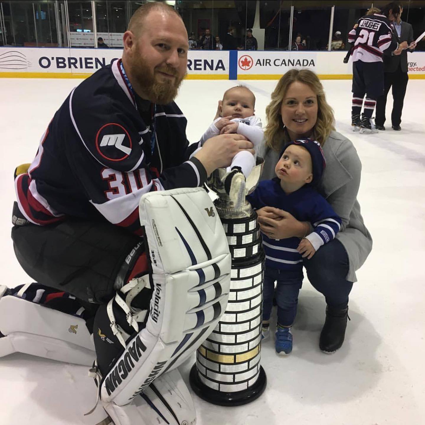Davis took a break from hockey to work as a construction engineer in Australia, helping rebuild Mackay after the 2008 floods. Once completed, he returned to ice hockey, playing for the Sydney Bears in the national league and the Central Coast Rhinos in the Australian International Ice Hockey Cup. He met his wife, Alex, in Australia and spent six years travelling overseas. He played 15 games for the Whitby Dunlops (2012, 13), achieving a save percentage of .900, then returned to Australia to be closer to Alex’s family.